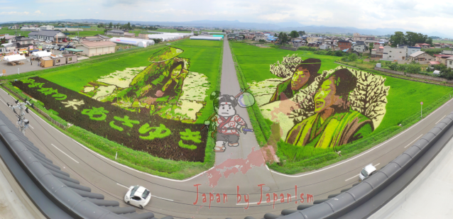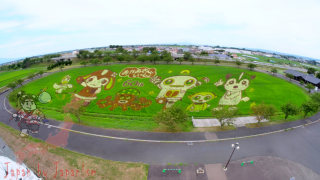 ก็ขอข้ามรายละเอียดด้านประวัติความเป็นมาไปเลยนะครับ แล้วไปชมกันเลยดีกว่า ว่า ปีนี้ ปี 2019 เขาจัดปลูกข้าวสลับสีให้เกิดเป็นศิลปะรูปอะไรบ้าง โดยผมจะพาไป 2 แห่ง 2 จังหวัด ในภูมิภาคโทโฮคุ ที่มีชื่อเสียงในด้านนี้ ทั้งที่ จ.อะโอะโมะริ และ จ.อะคิตะ ที่ได้ชื่อว่าเป็นแหล่งสาวงาม ข้าวอร่อย และสุนัขอะคิตะที่น่ารัก!