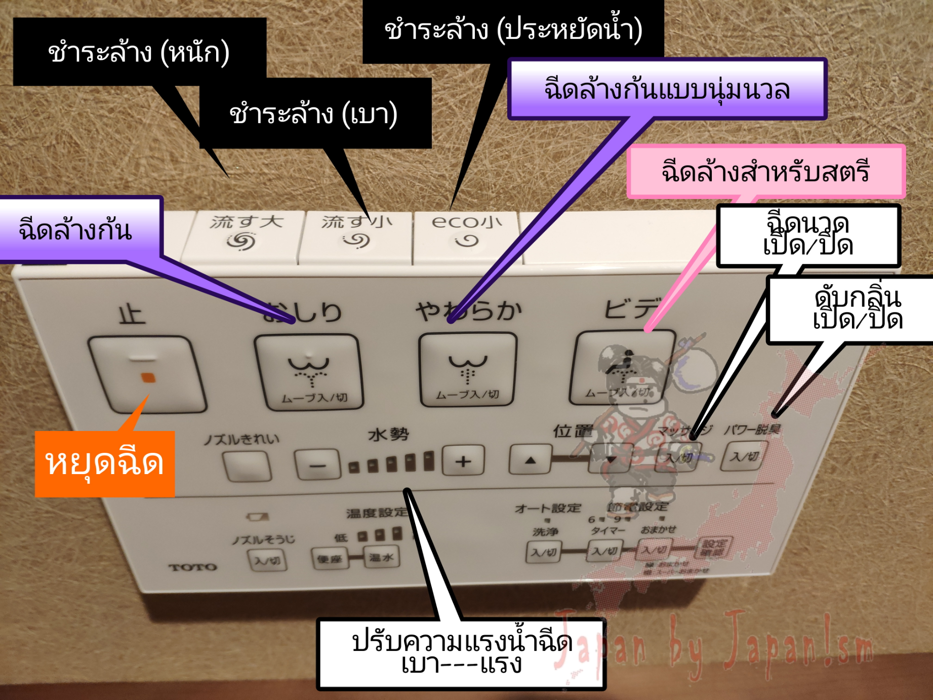เชื่อว่า ใครที่ไปเที่ยวญี่ปุ่น แล้วพอได้เข้าห้องสุขา ก็จะมีปัญหาตามมาหลังปฏิบัติภารกิจเพื่อท้อง-ไส้ แน่นอน ถ้าไม่นับส้วมแบบนั่งยองๆ แบบดั้งเดิม พอเจอส้วมแบบอัตโนมัติที่เพิ่มเติมปุ่มพิเศษช่วยอำนวยความสะดวกมาให้ ก็กลับกลายเป็นวุ่นวายได้ละครับ