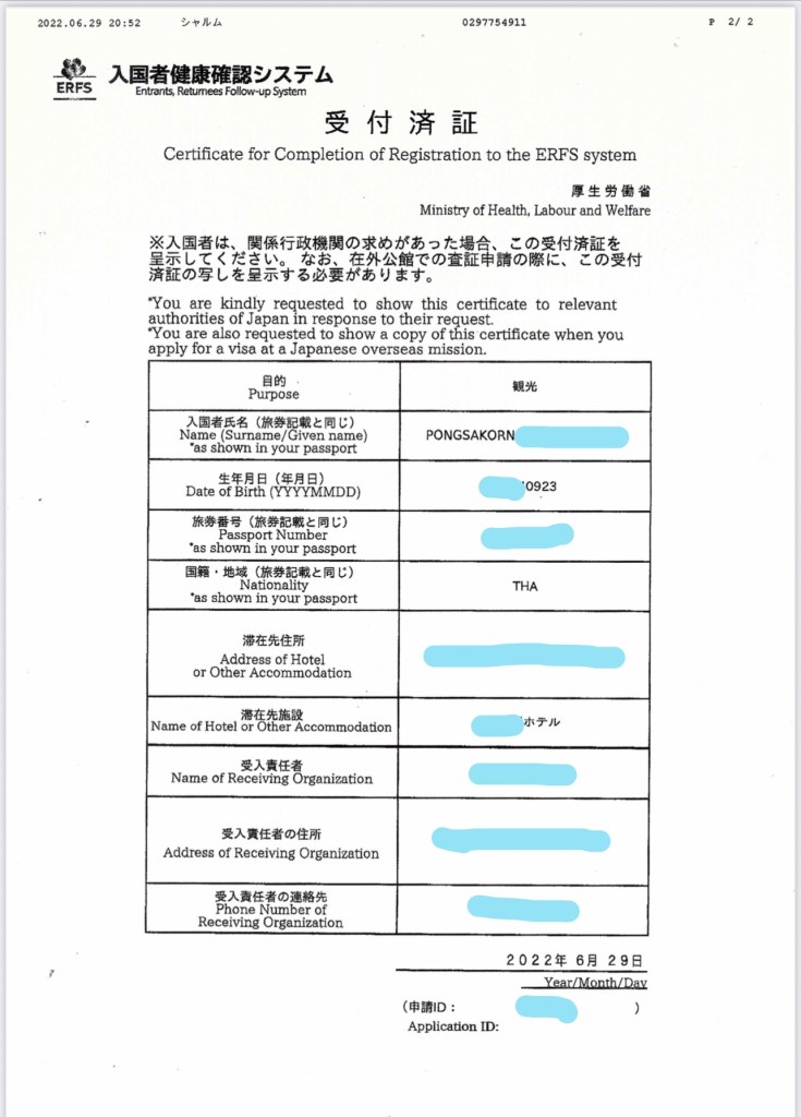หน้าตาของ ERFS ก็จะประมาณนี้ ต้องมีระบุชื่อผู้เดินทาง วันเดือนปีเกิด หมายเลขหนังสือเดินทาง ชื่อ-อยู่ ของโรงแรมที่จะไปพัก รวมถึงไปรายละเอียดต่างๆ ของบริษัทแลนด์โอเปอเรชั่นทางญี่ปุ่น ซึ่งเป็นผู้รับรองการออกเอกสารนี้